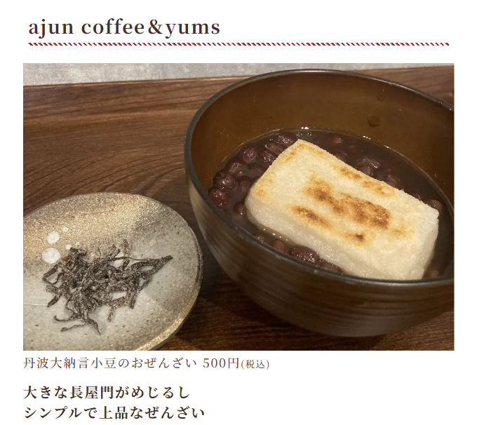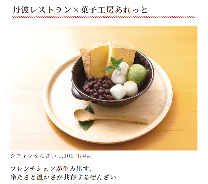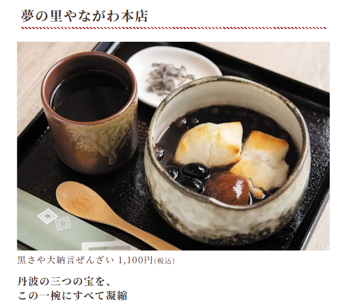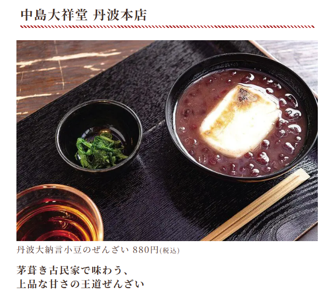 期間中は丹波の特産物である丹波大納言小豆を使用したこだわりのぜんざいが、市内の各店舗で提供されます。 今年の参加店舗は合計34店舗。