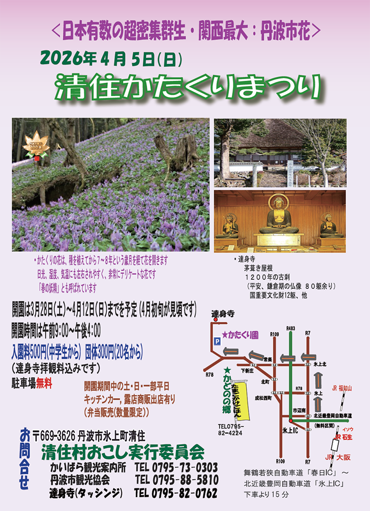ナビ登録用住所 兵庫県丹波市氷上町清住259 / TEL 0795-82-0762 (達身寺)