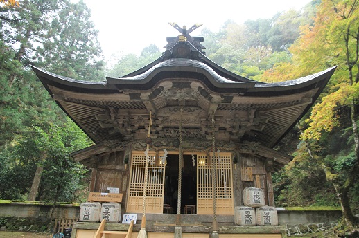 熊野神社は、亀山天皇の時代に今の矢代より2km奥の神篭り滝という所へ奇数の熊野神社(熊野権現)から分霊を勧請し、現在の地に至りました。それで、「今出権現」とも称されます。