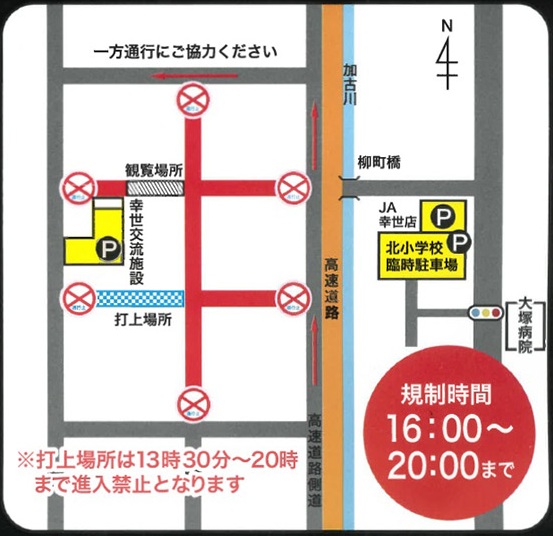 ※打ち上げ場所は13:30~20:00まで進入禁止となります。