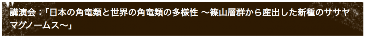 昨年、国内で初めてとなる新属新種の角竜類「ササヤマグノームス・サエグサイ」を中心に、古生物研究の第一線で活躍されている国内外の研究者たちによる講演会を開催します。