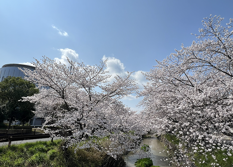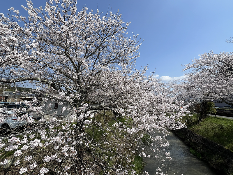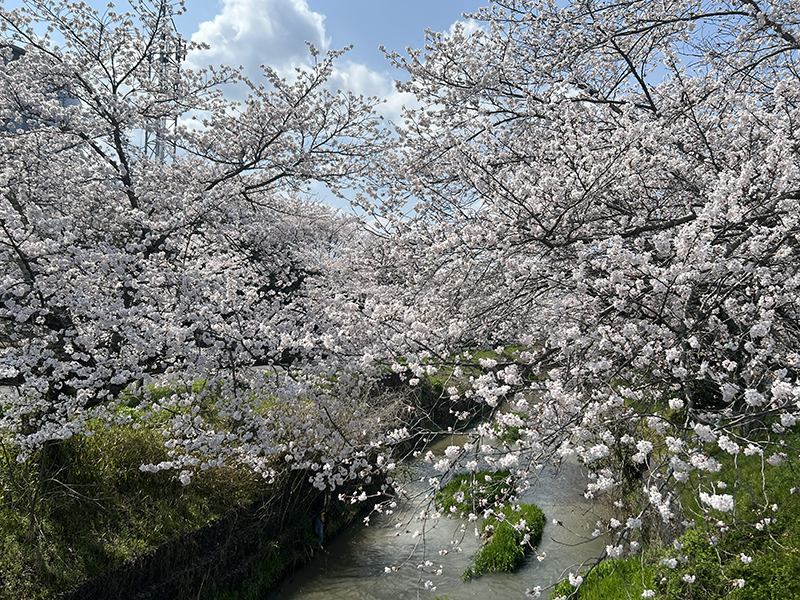 今現在、まだ工事未着手の箇所にある 桜の樹は、現在 満開となり、川沿いは 豪華に、見事に、美しい桜並木となっています 🌸🌸🌸![]()