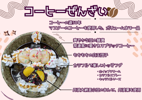 アイスコーヒー、ホイップクリーム、丹波大納言小豆、丹波栗・・・