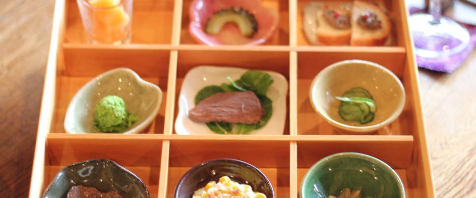 丹波鹿を中心に、里山と共生する食文化を料理として表現。鹿・猪を新しい角度から提案する。